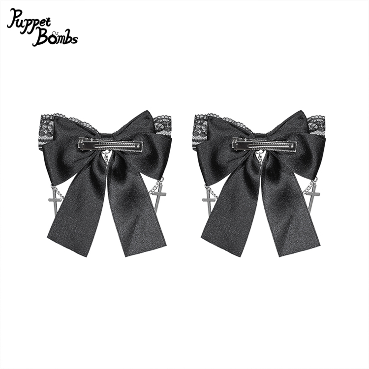 クロスチャームがアクセントになったリボンヘアクリップ2個セット。