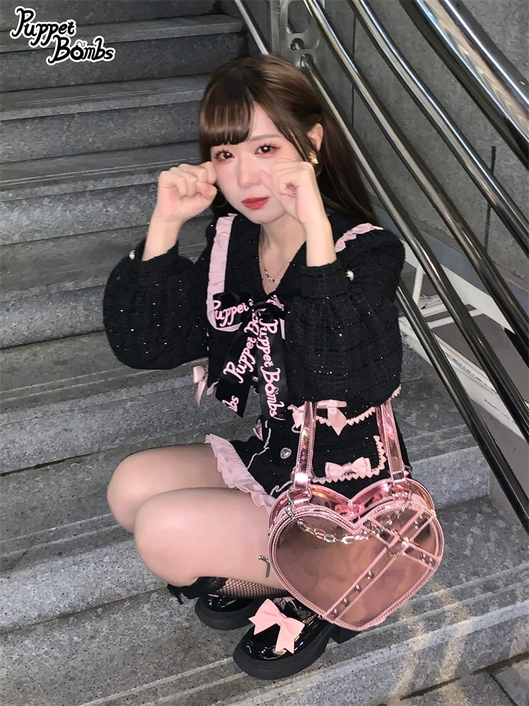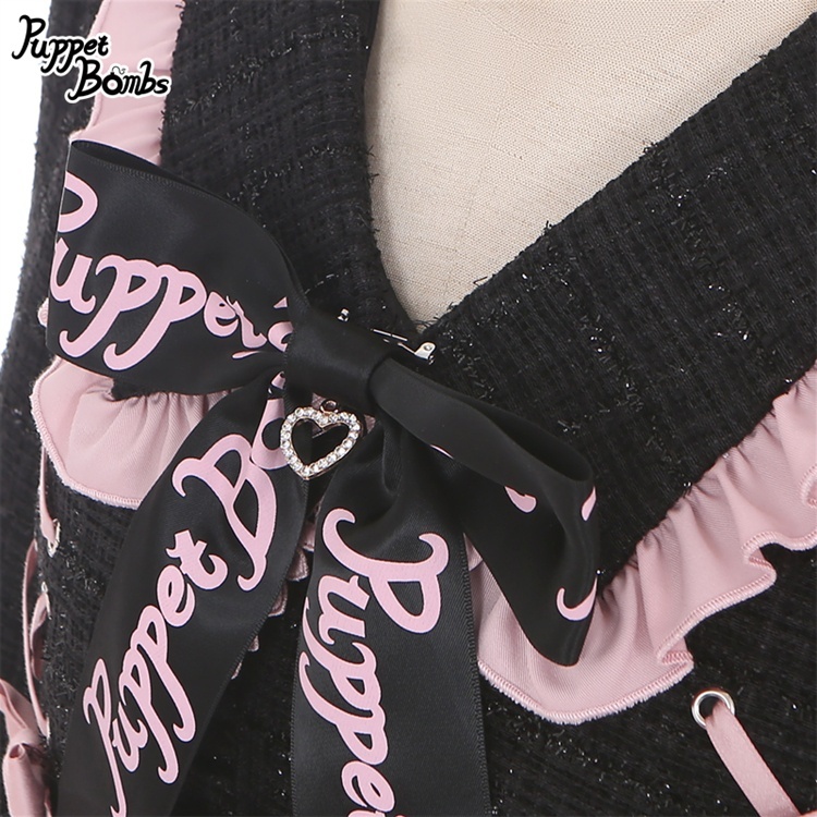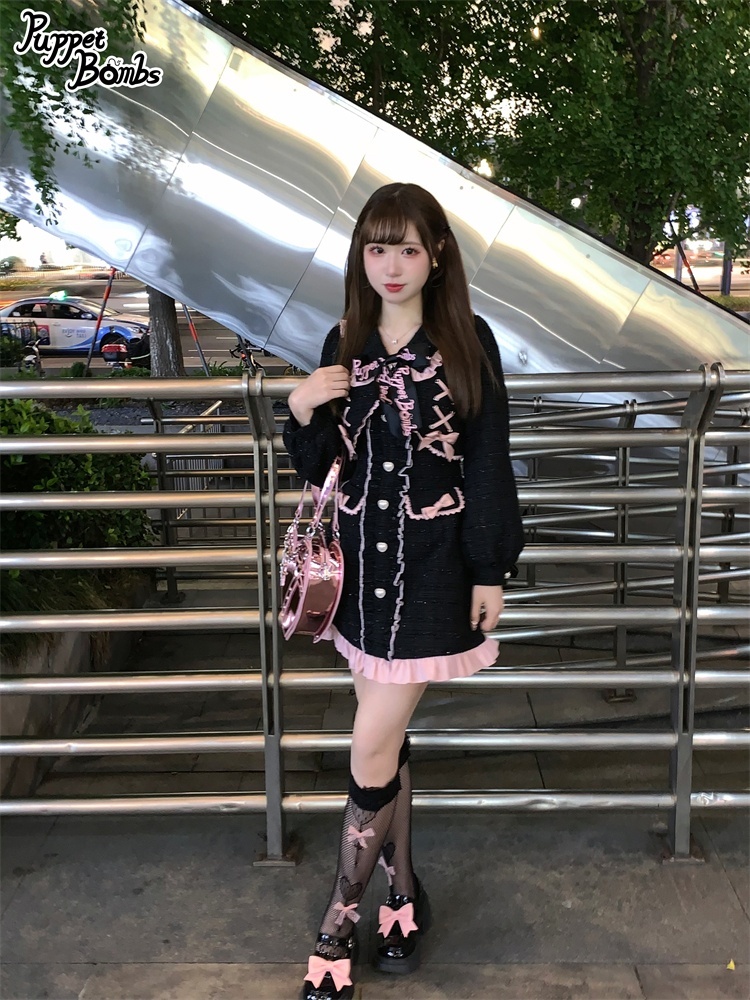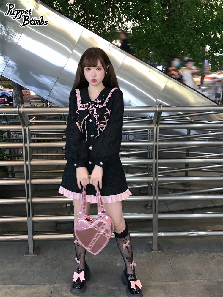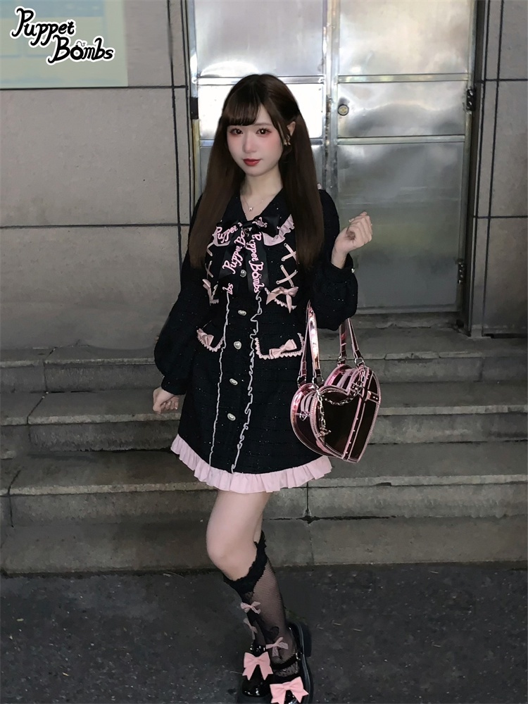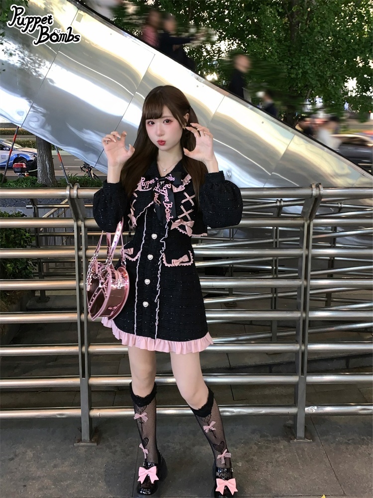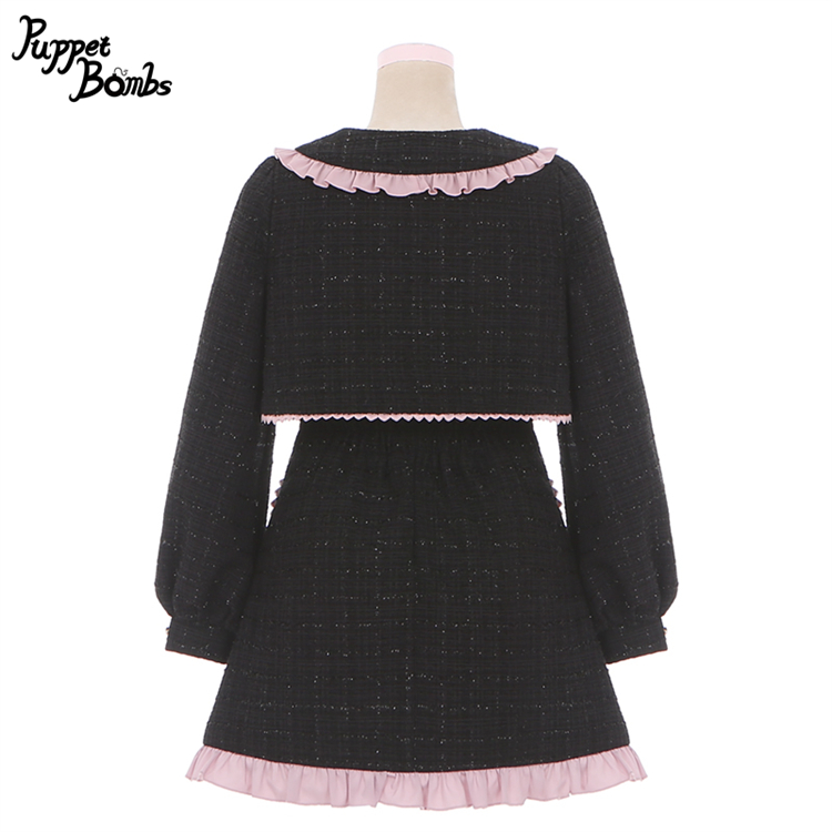 【Last one】【PuppetBombs】Q71ジャケットレイヤード風ツイードワンピース【50%OFF】 [Q71]