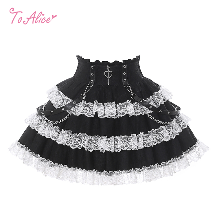 【送料無料】Q547チェーン付きホワイトレーストリムスカート《予約受付》 [Q547]