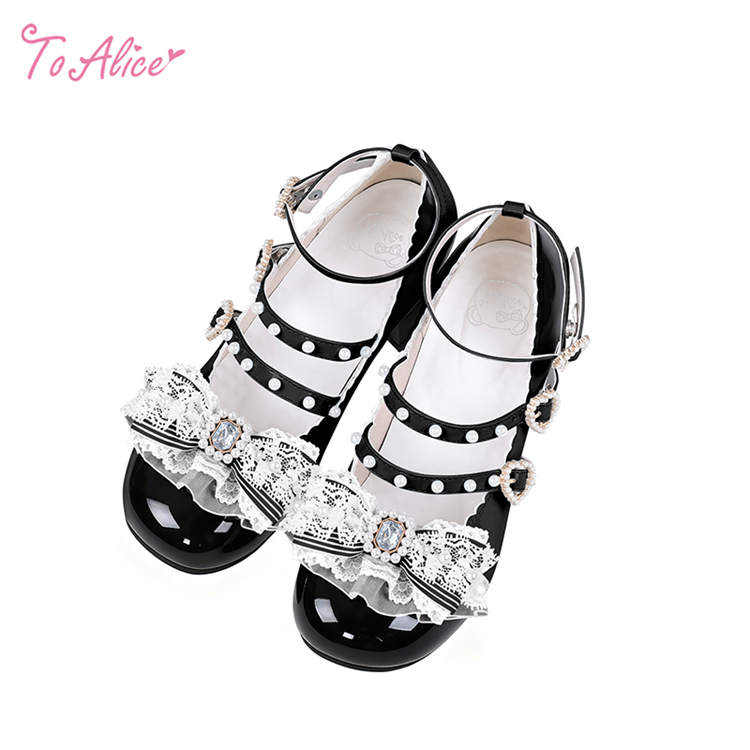 【ToAlice】Z307レースリボン×パールストラップパンプス [Z307]
