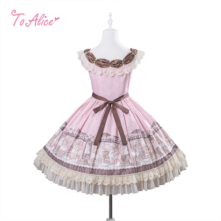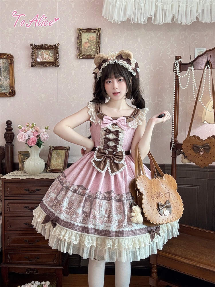 オリジナルプリントが可愛いアンティークデザインのジャンパースカート。