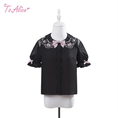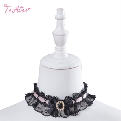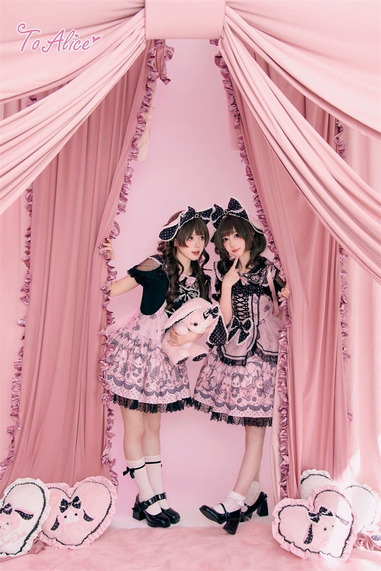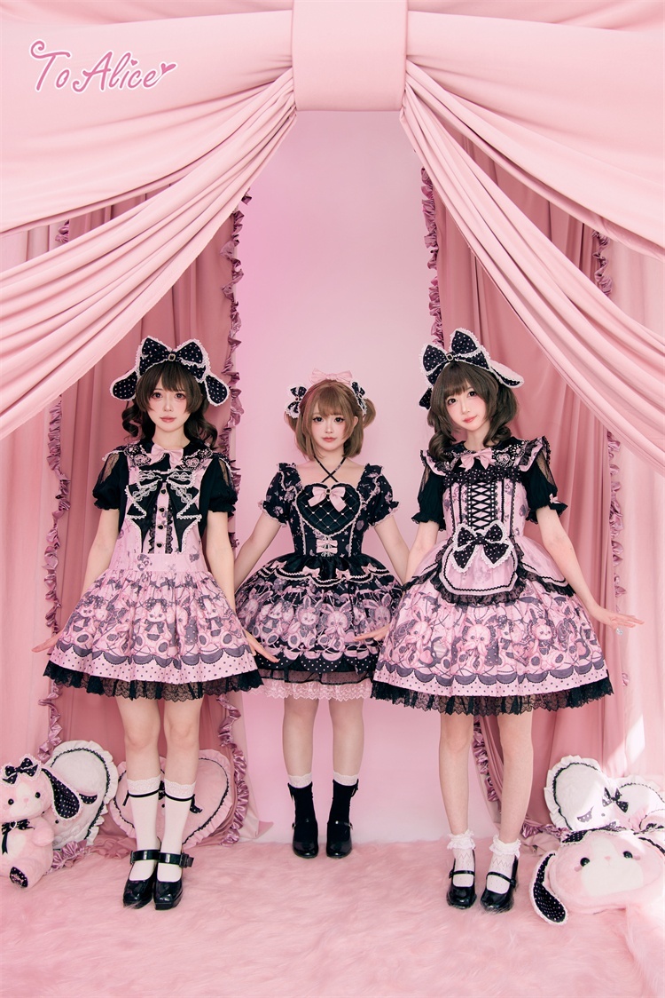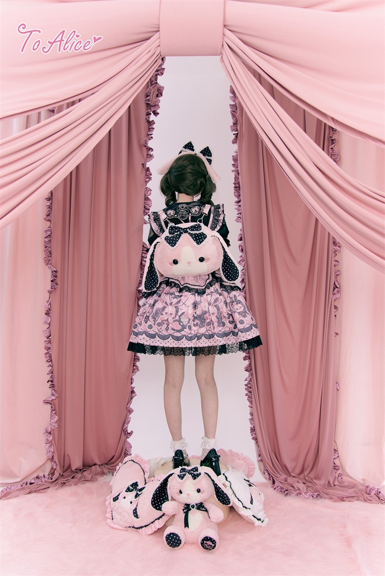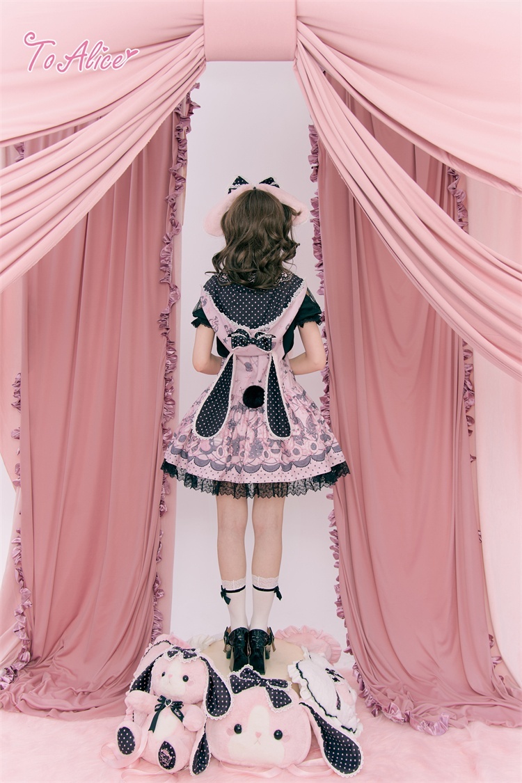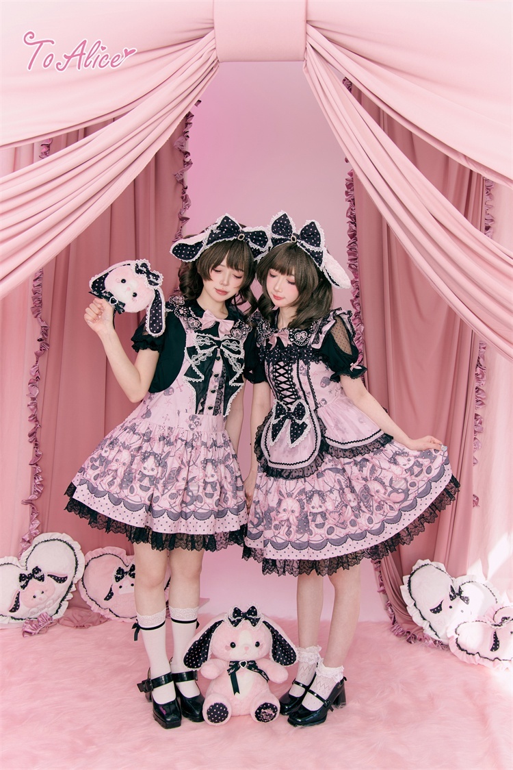 うさ耳付き黒×ピンクのドット柄リボンカチューシャ。