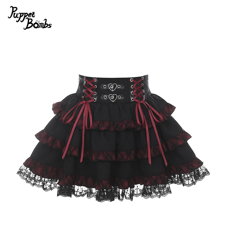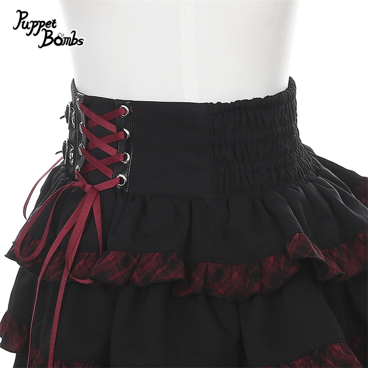 【送料無料】Q577 レッドチェック裾フリルスカート《予約受付》